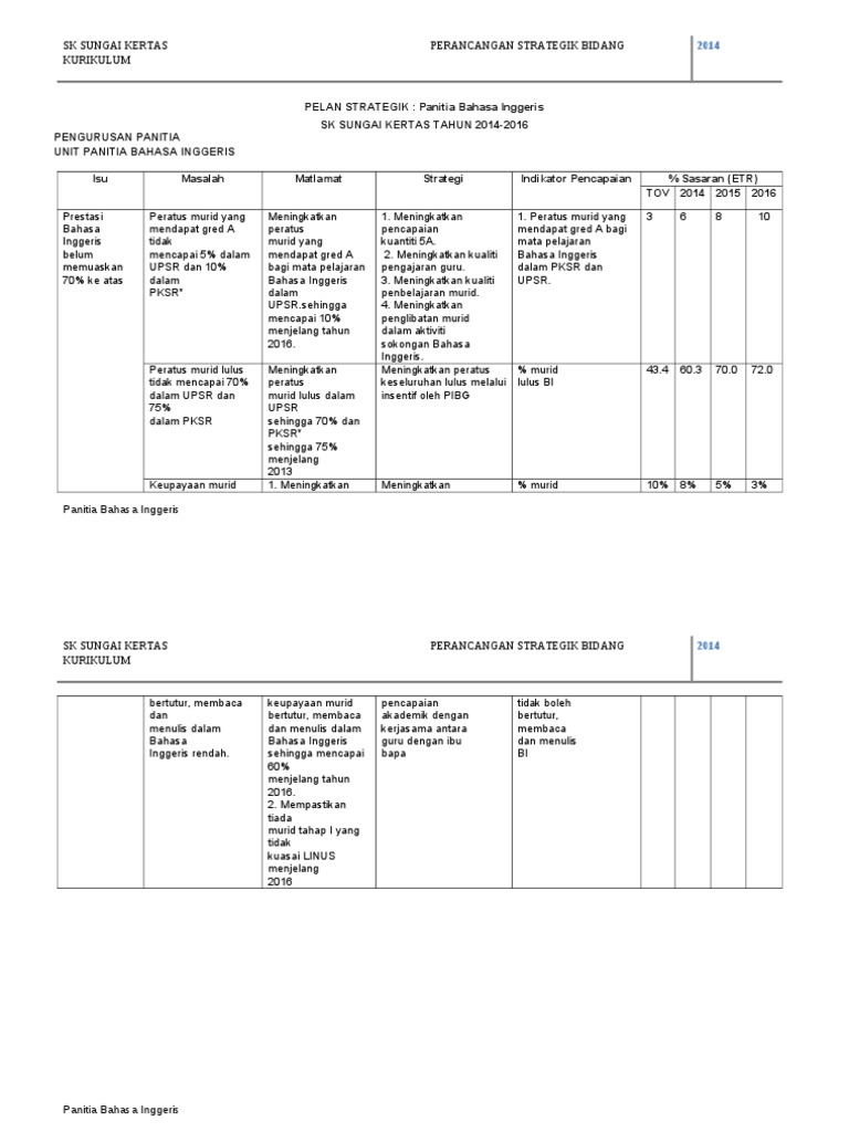 Dengan kata lain, pengurusan strategik merupakan aktiviti merancang, mengelola, memimpin dan mengawal yang disusun secara kemas dan teratur bagi mencapai matlamat sesebuah organisasi. Apa tidaknya, ia adalah realiti testimoni yang tidak mampu disanggah yang menunjukkan hasil komitmen kerajaan melaksanakan pelbagai inisiatif strategik dan tindakan progresif. Perancangan strategik panitia prinsip perakaunan cute766. Pelan strategik panitia bahasa inggeris taktikal dan operasi 2017.docx. Pksr = penilaian kendalian sekolah rendah.