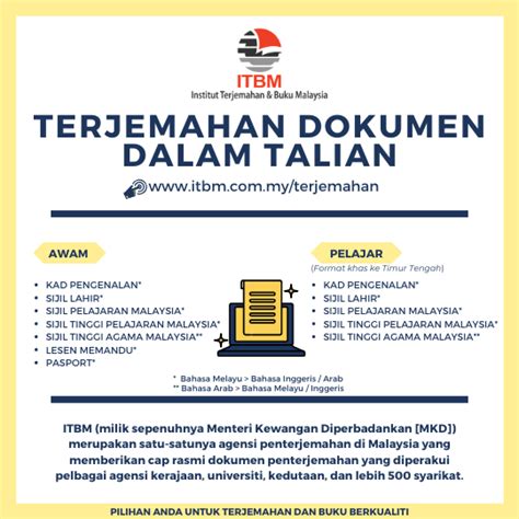 55,515 likes · 527 talking about this · 14,430 were here. (itbm provides quality professional translation services in almost every field document, certificate, book, report, subtitle and at the best price). Sep 14, 1993 · institut terjemahan & buku malaysia (atau singkatannya, itbm; Portal kerjaya kerja kosong terkini hanya menyiarkan maklumat kekosongan jawatan untuk memudahkan anda membuat permohonan. Dahulunya dikenal sebagai institut terjemahan negara malaysia itnm) telah ditubuhkan pada 14 september 1993 bagi menyediakan prasarana industri terjemahan di malaysia.